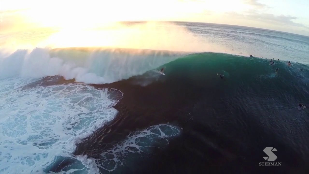 O fotografo Eric Sterman usou um drone para fazer imagens aéreas incríveis da bancada havaiana e de toda a ação do surfistas.
